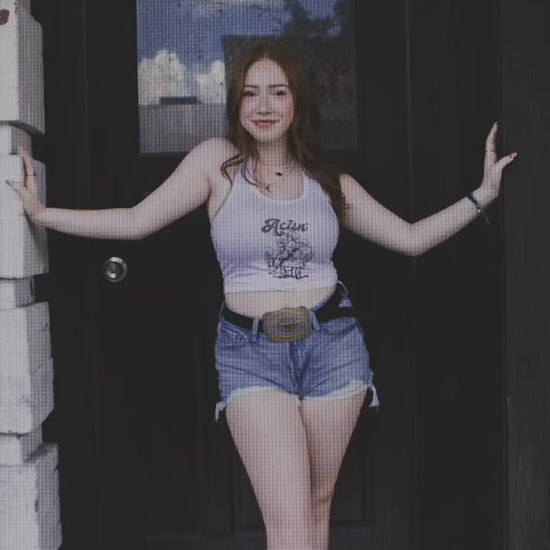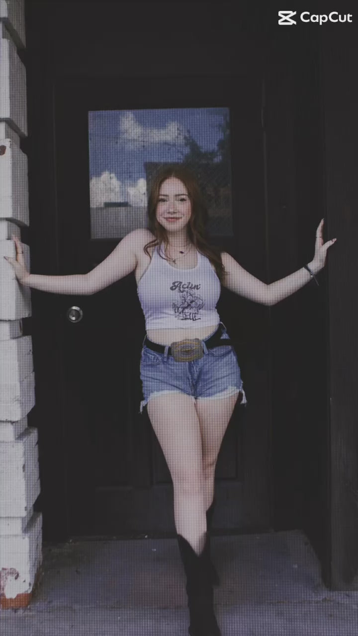 "Get ready to stir up some dust with our Actin’ Up Crop Tank Top! This sassy tank is perfect for those who ain't afraid to act up and stand out. With its bold design and fearless attitude, this top is sure to turn heads wherever you go. Embrace your inner rebel and let your style do the talking with the Actin’ Up Crop Tank Top!" 🌵🤠