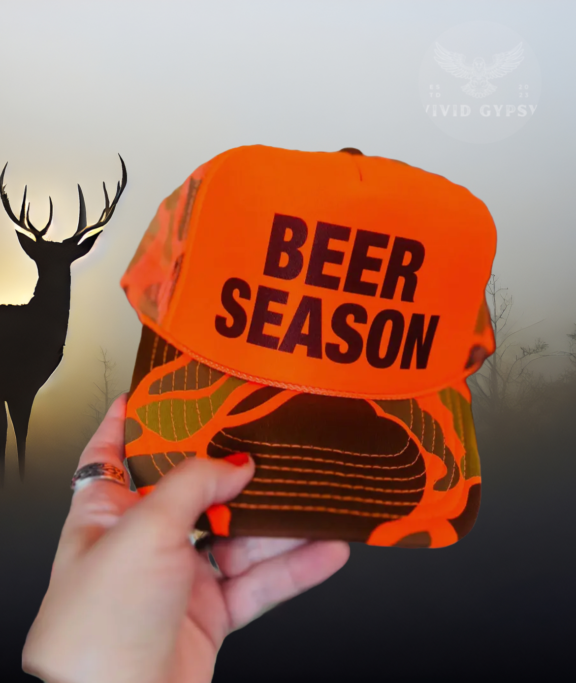 Get ready for the ultimate outdoor adventure with our Beer Season - Foam Orange Camo Trucker Hat! This hat is the perfect blend of fun and functionality, featuring a vibrant orange camo pattern that screams excitement. The foam front ensures a comfortable fit while the mesh back keeps you cool, making it ideal for those long days in the sun. Whether you're out hunting, fishing, or just enjoying a cold one with friends, this hat is your go-to accessory. Embrace the season and stand out in style with the Beer Season trucker hat – it's a must-have for any outdoor enthusiast!