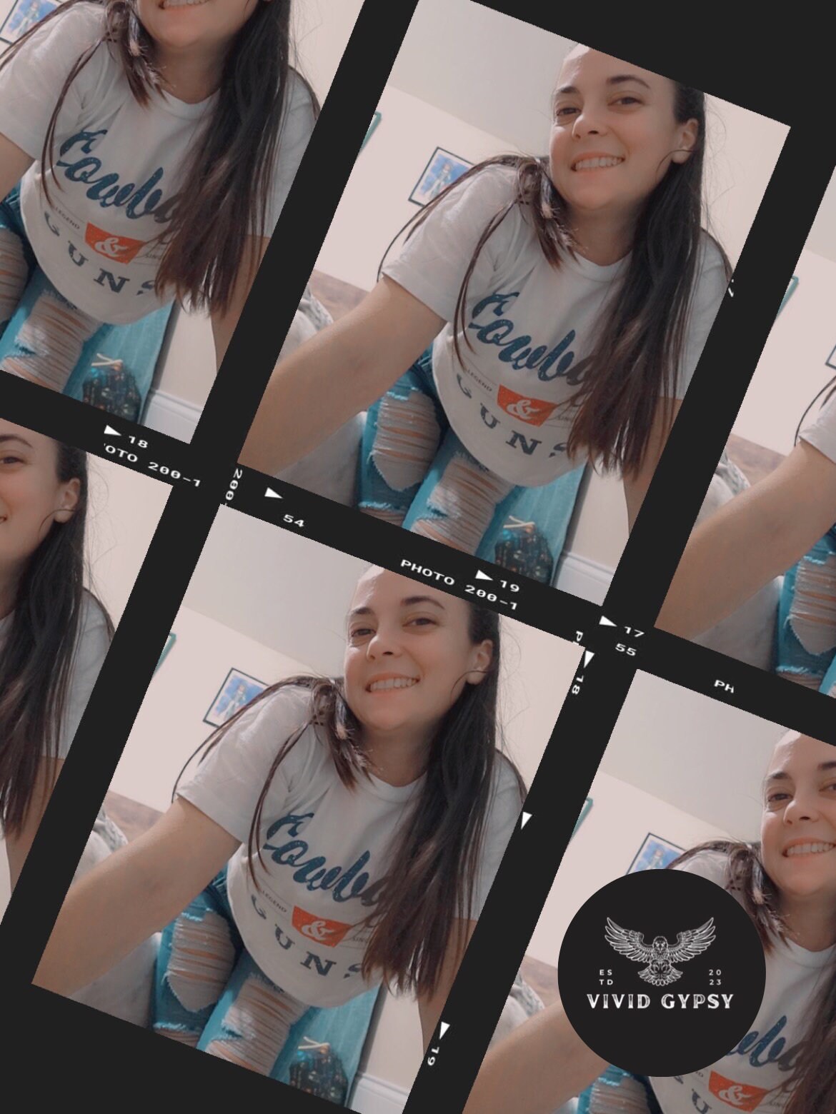 "Giddy up, cowboys and cowgirls! Our 'Cowboys & Guns' crop top from Vivid Gypsy is the perfect way to show off your western spirit. Whether you're two-stepping at the saloon or just kicking back on the ranch, this top will have you feeling fierce and fabulous. Get your hands on one today and let's ride off into the sunset together!