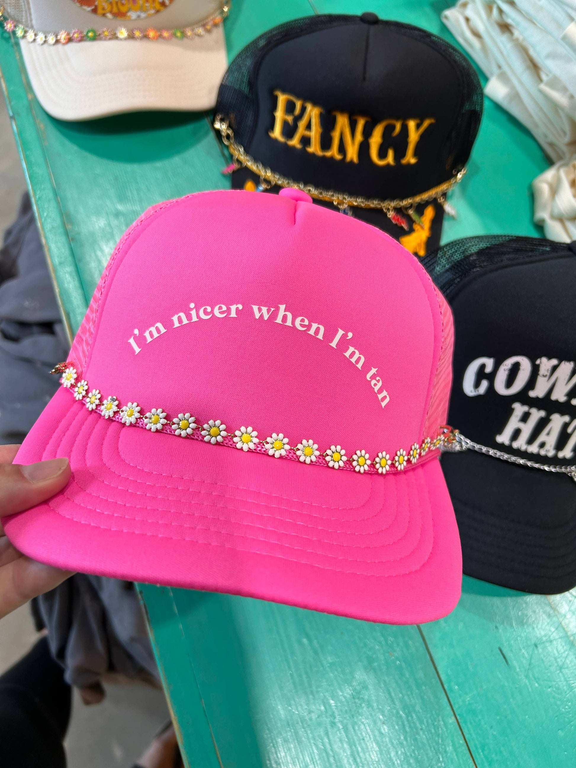 Vibes Hat Company daisy trucker hat chain. Each chain has lobster claws so you can add extra flair to your favorite trucker hats! Comes individually packaged for resale.