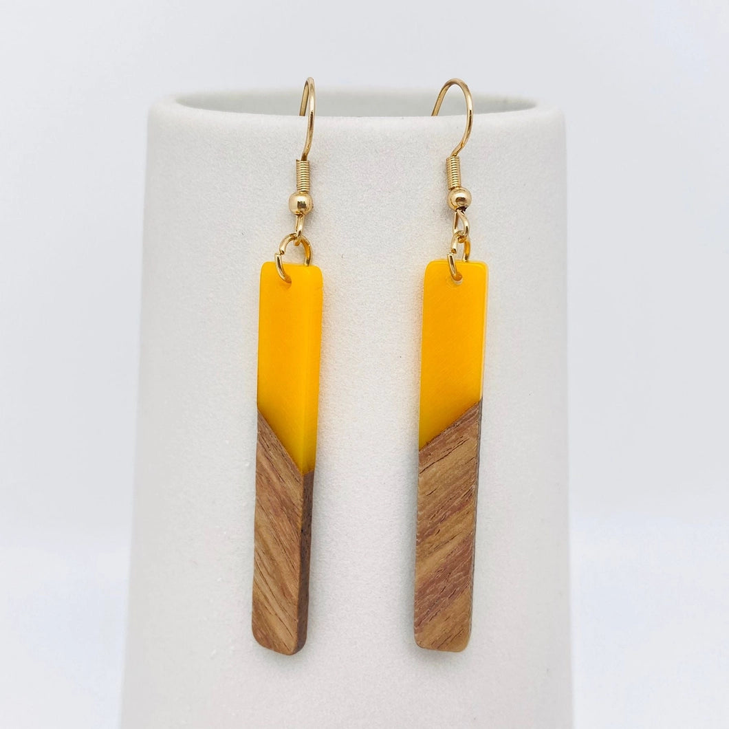 “ Introducin' the Resin Wooden Stick Rectangular Pendant Earrings, a true Western gem! These earrings capture the rugged beauty of the wild west with their rustic wooden sticks and resin pendant. Saddle up and show off your cowgirl style with these one-of-a-kind accessories. Yeehaw! “🌵🤠