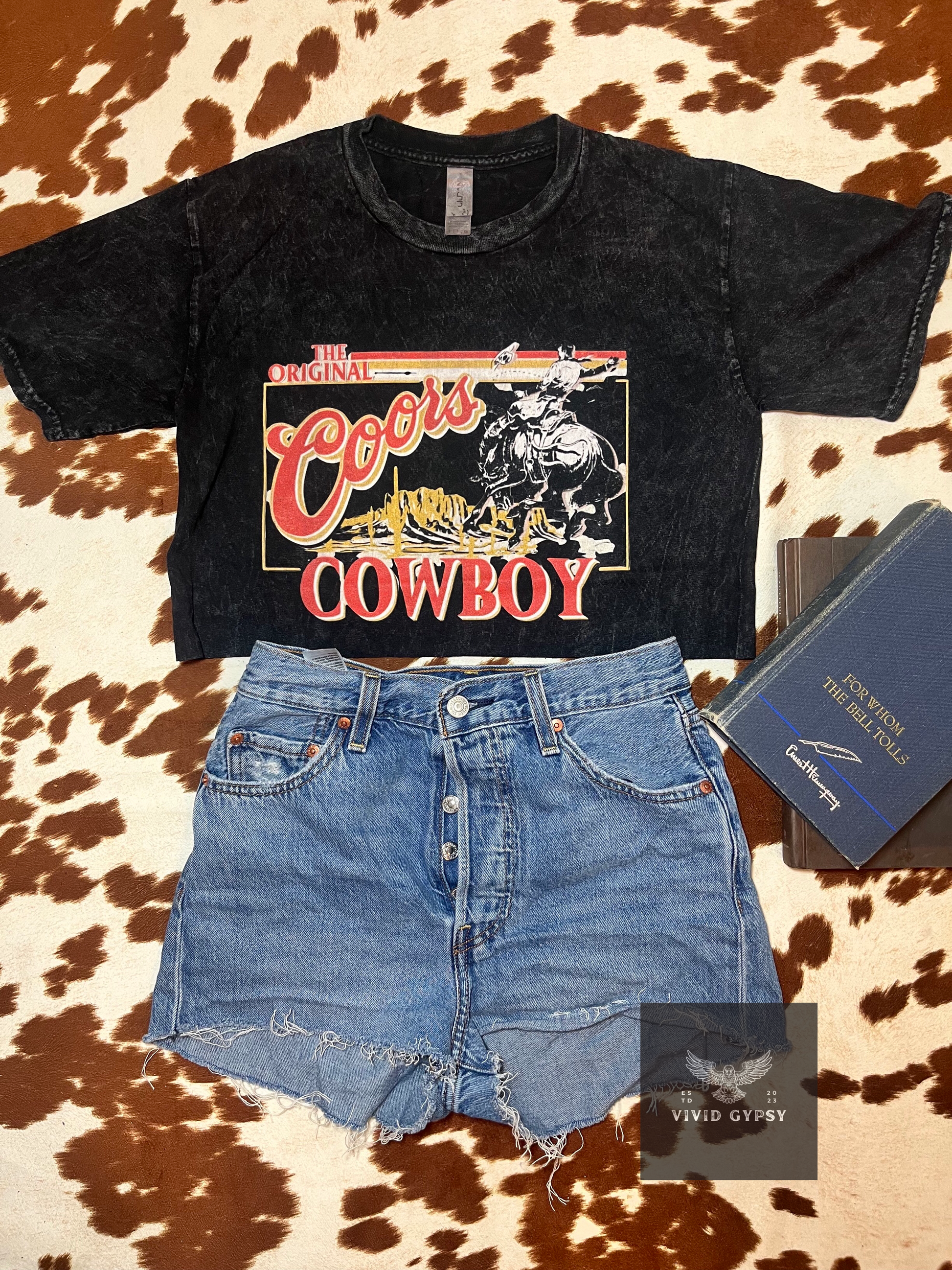 "Step into the wild West with our Vivid Gypsy vintage crop top, inspired by the original Coors cowboy. With its rustic charm and retro style, this top is perfect for anyone who loves to kick up their boots and let loose."