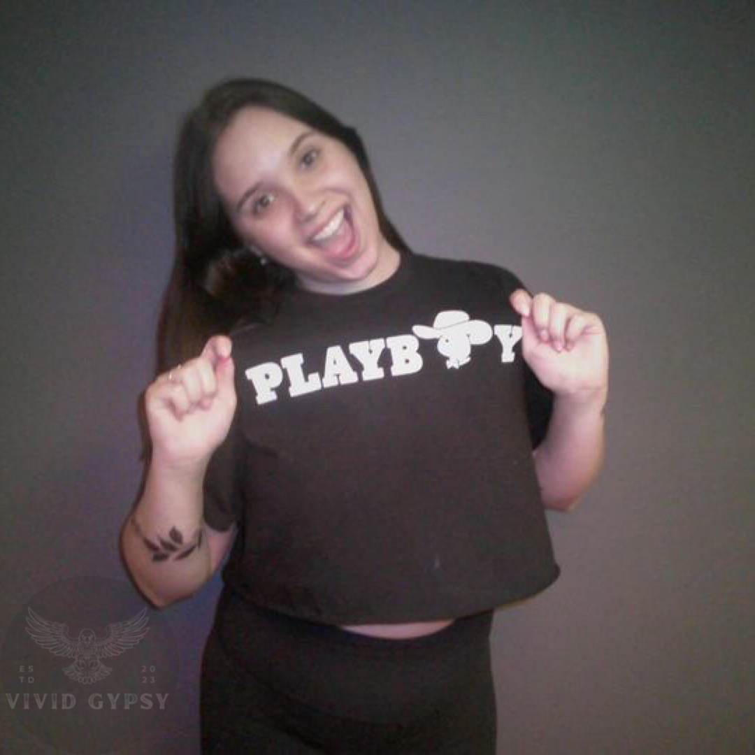 “Saddle up, cowgirls! 🐎 This Playboy-inspired crop top is perfect for all you fierce rodeo divas out there. 🌟 With its bold design and sassy attitude, you'll be turnin' heads wherever you go. 🔥 So grab your cowboy boots, throw on this crop top, and let your wild side roam free! “🌵💃
